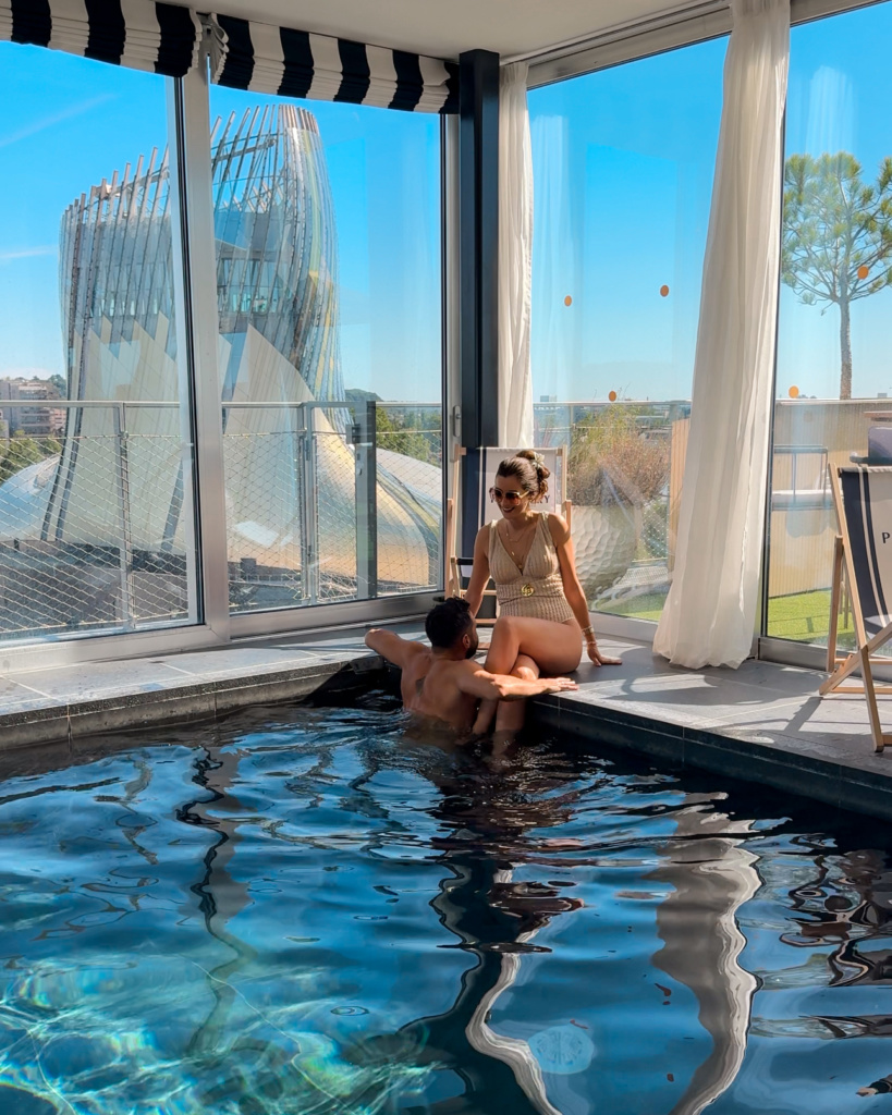 On pourrait presque passer tout le week-end sans sortir de l’hôtel entre sa piscine intérieure en rooftop qui permet de nager face aux toits bordelais, le rooftop qui offre des couchers de soleil magiques ainsi que le Vertigina dont je vous parlerais dans la rubrique activités ! C’est vraiment une adresse parfaite pour allier confort, style et emplacement idéal.